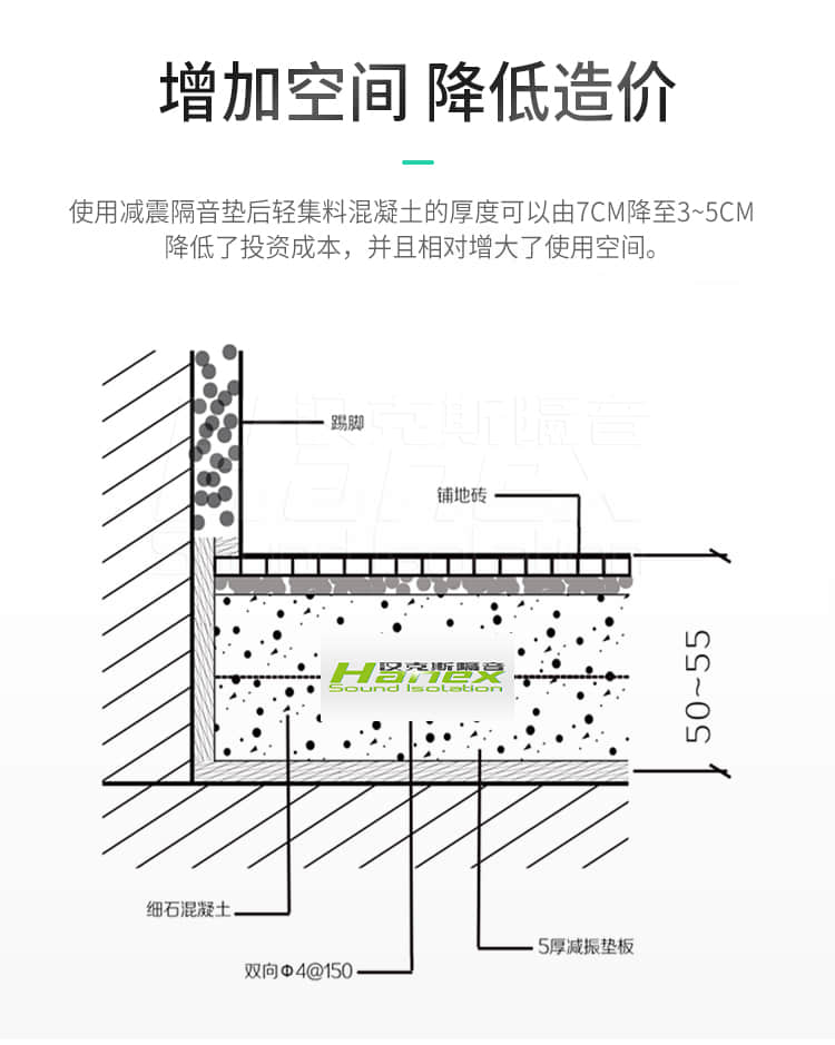 4.性價比優勢:超薄材質不以犧牲層高為代價來換取減振保溫的綠色達標;柔性材質大限度避免裂縫,從而使小成本實現減振、保溫兩全其美。