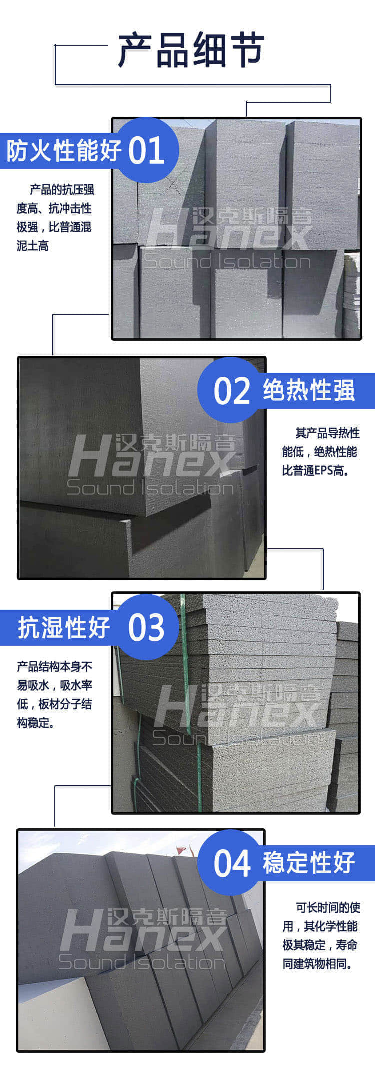 • 良好的隔音阻燃性能,EPS模塑聚苯板蜂窩狀閉孔結夠不僅具備了很強的防噪隔音功能,有較好的防火阻燃性能;