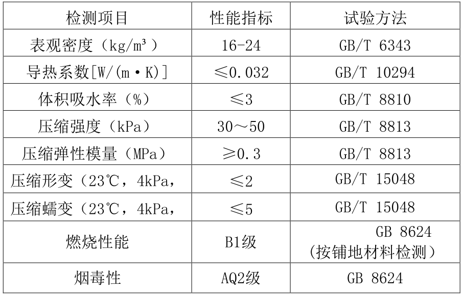 表3.0.2 HKS 改性聚丙烯保溫隔聲板的主要性能指標